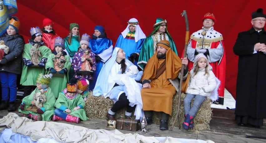 Celem marszu był Plac Ratuszowy. Tam przed Miejskim Ratuszem stanęła scena z inscenizacją stajenki, w której narodził się Jezus. Kolorowy korowód pokłonił się Świętej Rodzinie, a Mędrcy złożyli tradycyjne dary: złoto, kadzidło i mirrę. Po dotarciu do jeleniogórskiej stajenki, ks. Bogdan Żygadło odczytał fragment Ewangelii, a potem dawaliśmy świadectwo swojej wiary poprzez wspólne kolędowanie.