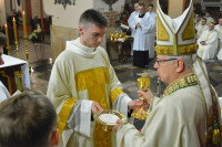 W sobotę w południe biskup legnicki Andrzej Siemieniewski udzielił święceń prezbiteratu dwóm diakonom – Krzysztofowi Borysiewiczowi z parafii św. Jana Apostoła i Ewangelisty w Jeleniej Górze oraz Arturowi Jaguszczakowi z parafii Podwyższenia Krzyża św. w Legnicy. W uroczystości udział wzięli biskupi seniorzy: Stefan Cichy i Zbigniew Kiernikowski, przełożeni seminarium duchownego oraz wykładowcy, księża proboszczowie i wikariusze z parafii, z którymi związani byli kandydaci do święceń, klerycy, rodzice i bliscy.