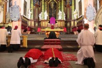 Liturgia Wielkiego Piątku rozpoczęła się w legnickiej katerze o godzinie 18.30. Modlitwie przewodniczył biskup legnicki Andrzej Siemieniewski. On to po przyjściu do prezbiterium upadł na twarz w znaku prostracji. Tak rozpoczęła się liturgia Męki Pańskiej.