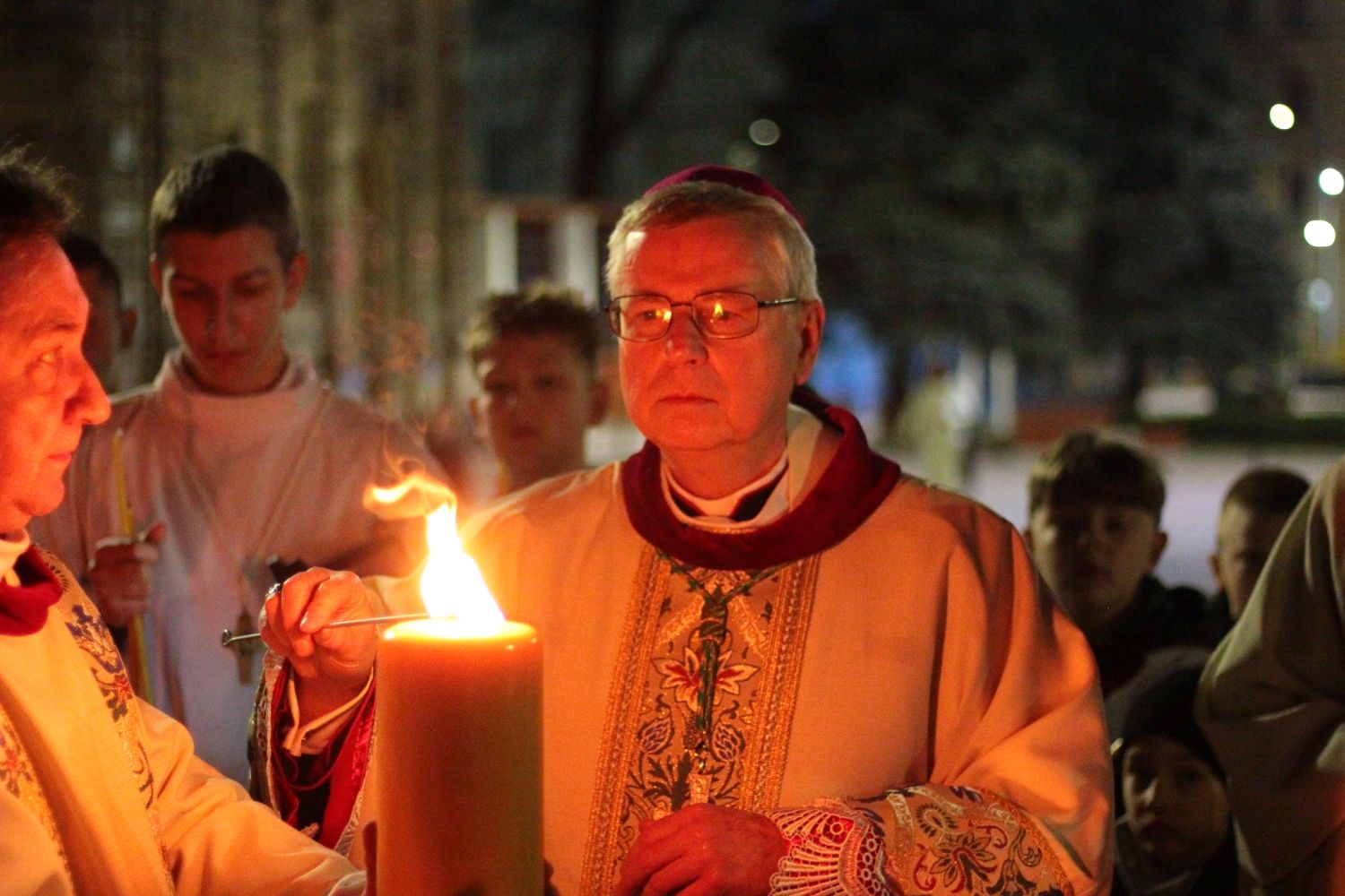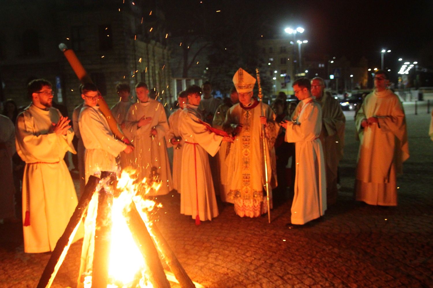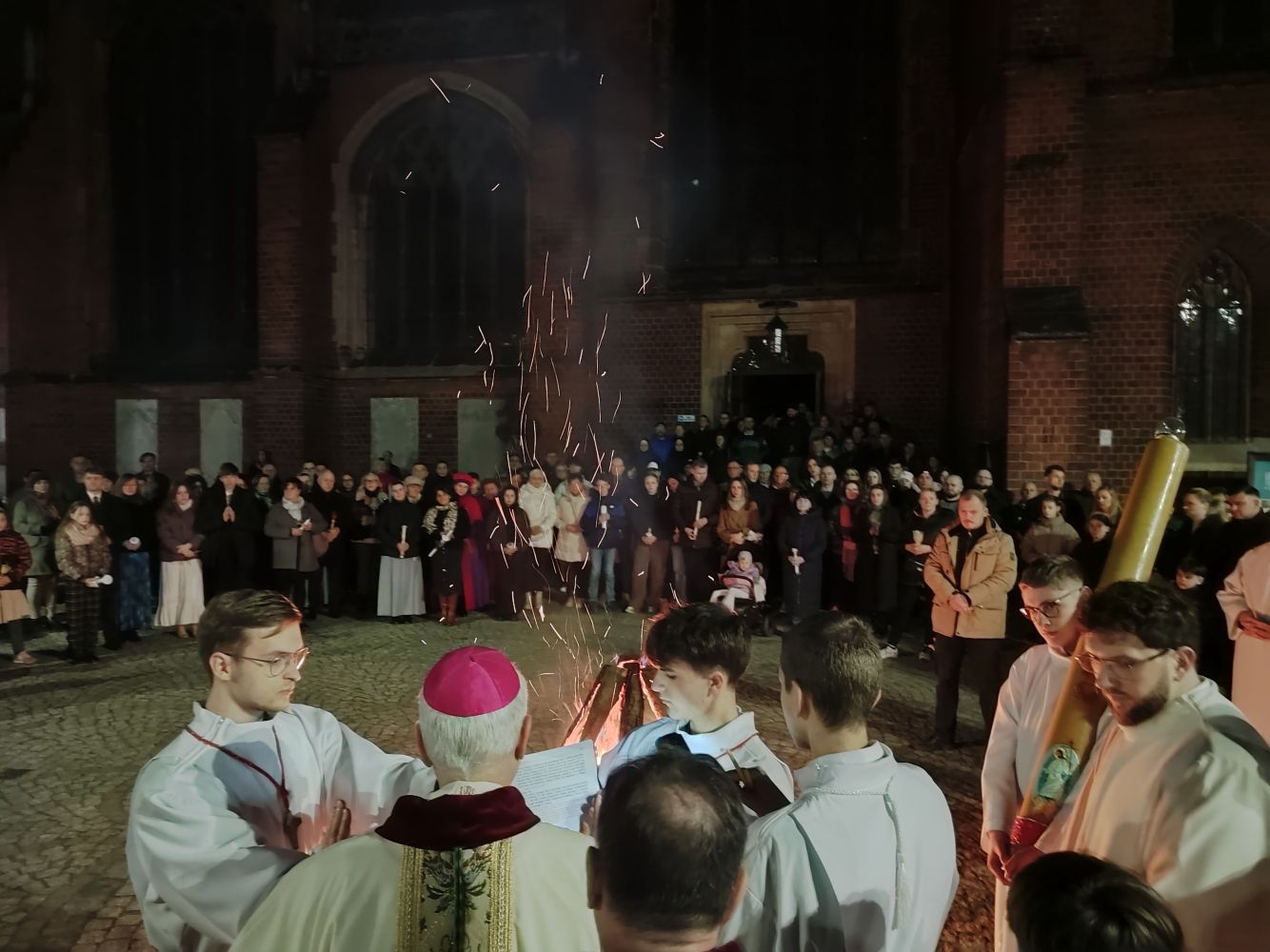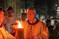 Sama liturgia rozpoczęła się na placu przed katedrą, gdzie biskup pobłogosławił ogień od którego zapalno paschał. Ten wniesiony do ciemnej katedry stał się Światłem Chrsytusa oświecającym nasze życie.