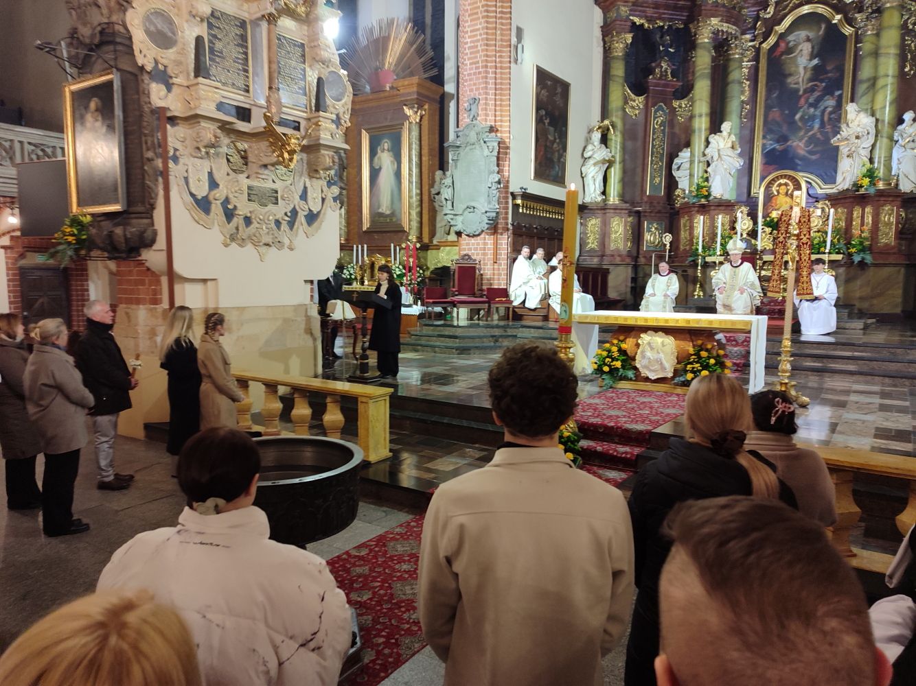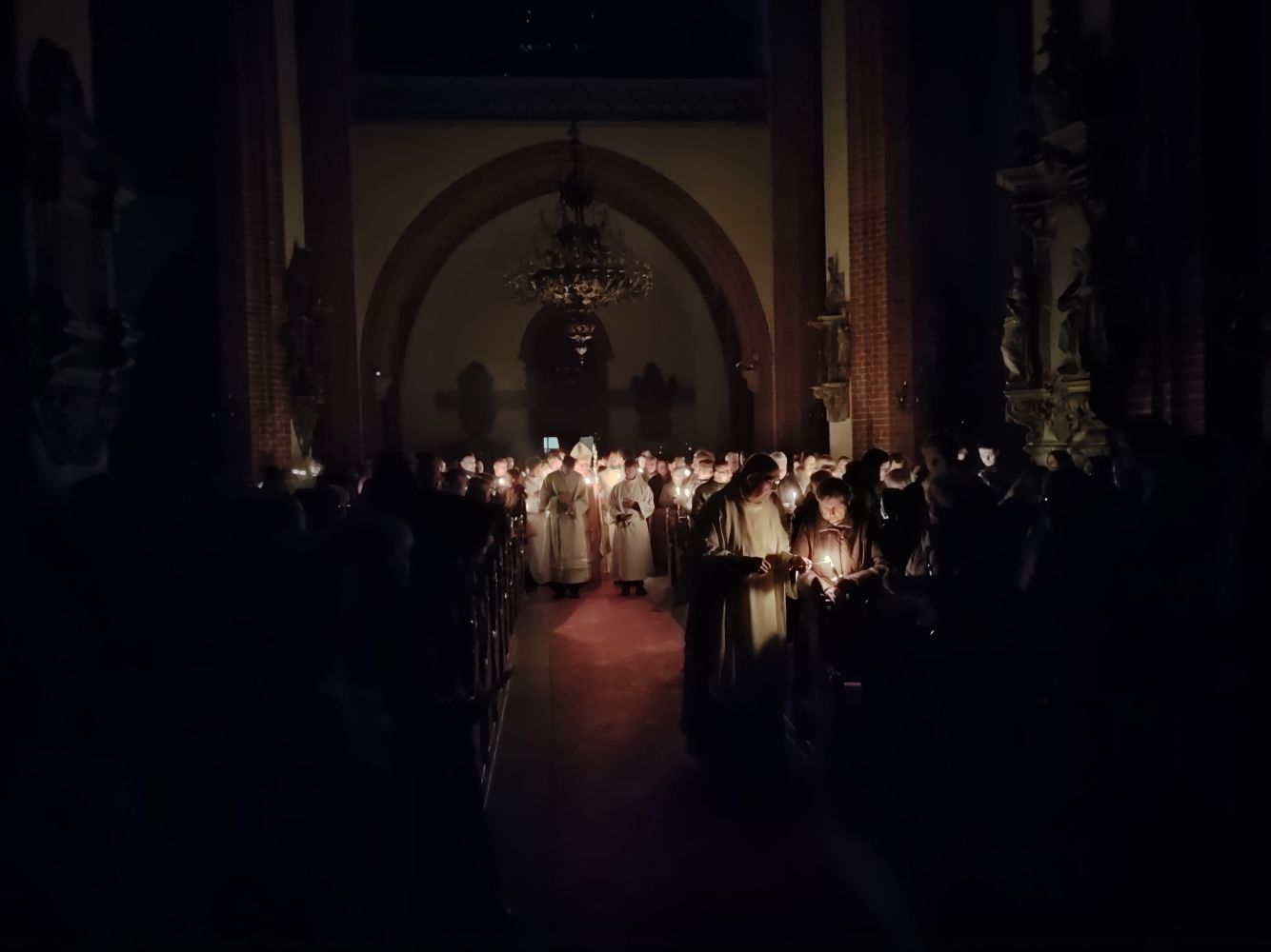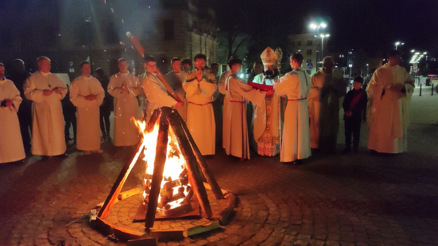 Sama liturgia rozpoczęła się na placu przed katedrą, gdzie biskup pobłogosławił ogień od którego zapalno paschał. Ten wniesiony do ciemnej katedry stał się Światłem Chrsytusa oświecającym nasze życie.