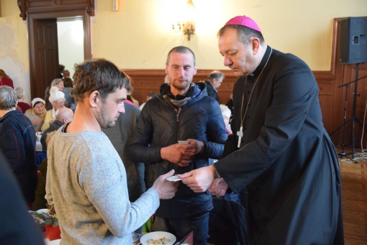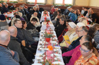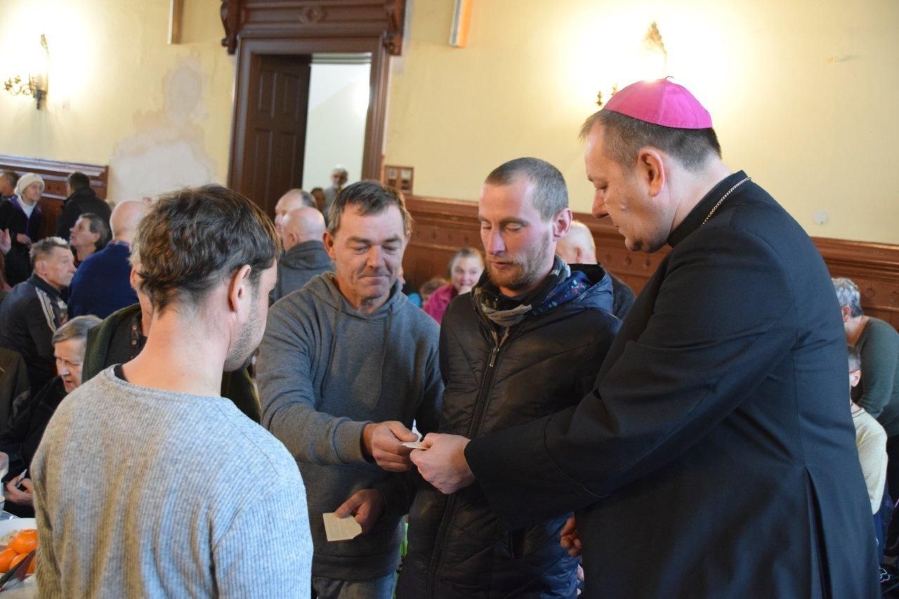 Na stole był barszcz z uszkami, a także tradycyjne polskie dania, a nade wszystko bliskość drugiego człowieka. Przy wspólnym stole zasiedli ludzie samotni, ubodzy, starsi, bezdomni, samotne matki i rodziny z dziećmi. W sumie z zaproszenia skorzystało ponad 130 osób. Uczestnikiem tego wyjątkowego spotkania był ks. biskup Piotr Wawrzynek. Na wigilii obecni byli również przedstawiciele Straży Miejskiej.
