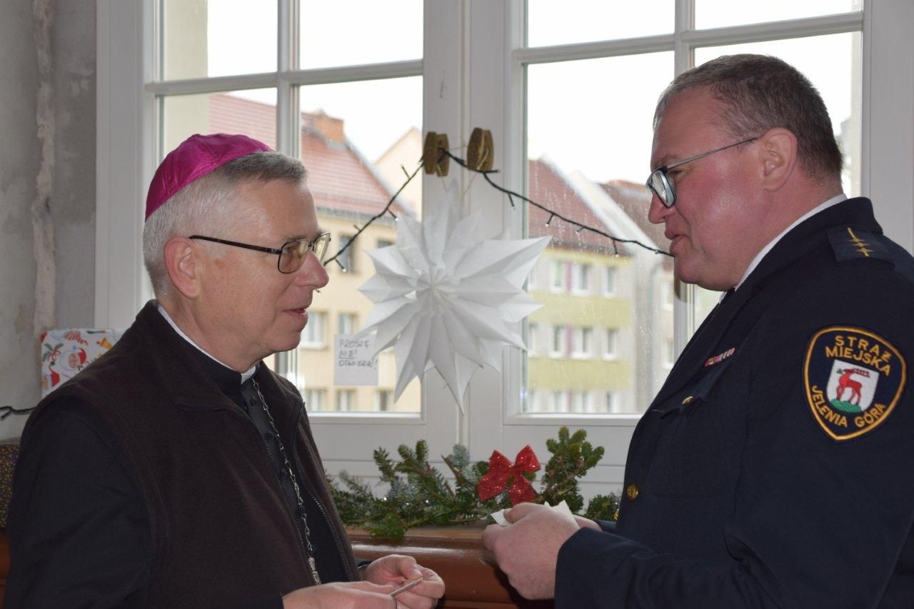 Po zakończonym spotkaniu, wszyscy uczestnicy: wolontariusze i nasi goście zostali obdarowani świątecznymi paczkami, które ufundowali: pan Tomasz Kuban, NSZZ Solidarność Regionu Jeleniogórskiego i Straż Miejska Jeleniej Góry.