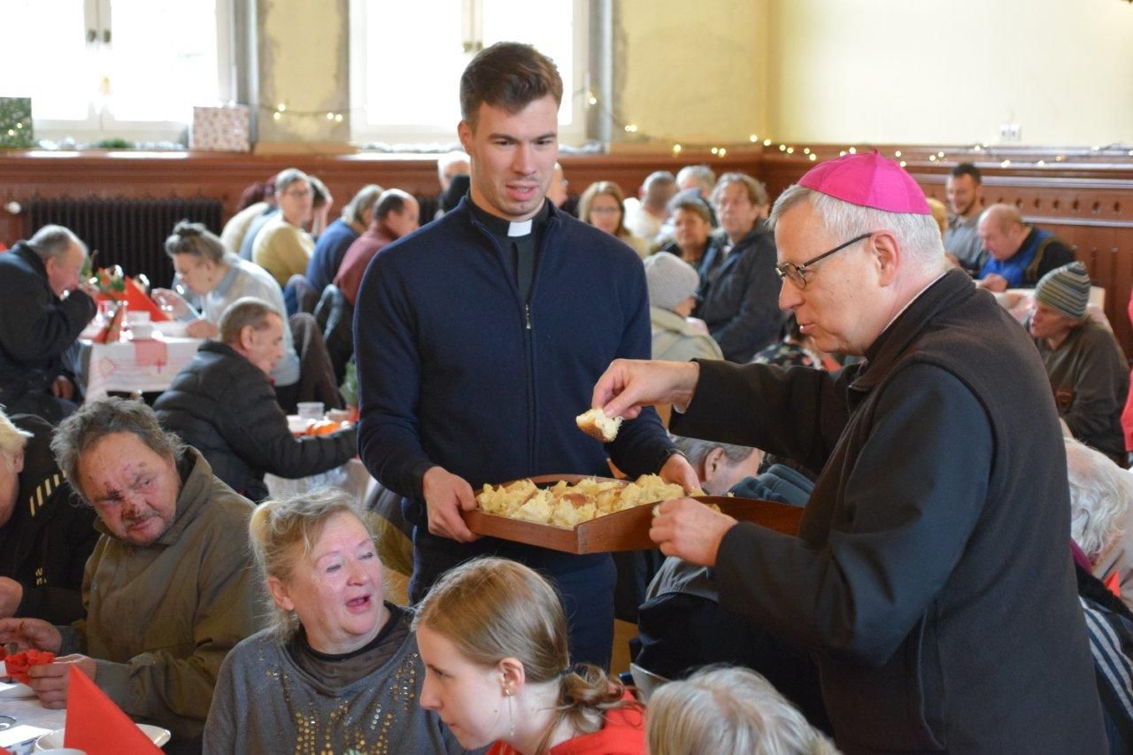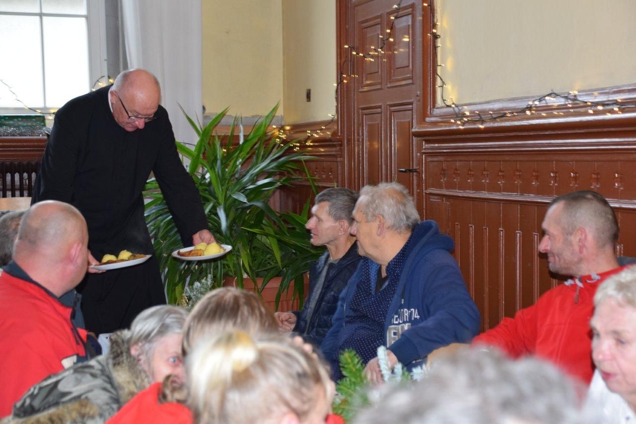 Przy wspólnym stole zasiedli ludzie samotni, ubodzy, starsi, bezdomni, samotne matki i rodziny z dziećmi. W sumie z zaproszenia skorzystało 112 osób. Uczestnikiem tego wyjątkowego spotkania był ks. biskup Andrzej Siemieniewski, który na tę okazję przywiózł dwa warkocze chałki. Zostały one podzielone na kawałki i rozdzielone pomiędzy zebranych. Była to wspaniała okazja do króciutkiej rozmowy z Pasterzem naszej diecezji.