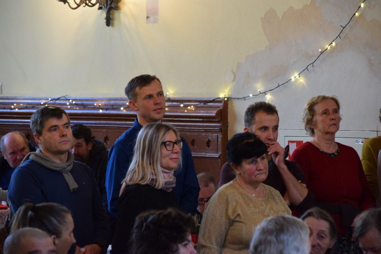 Uczestnicy świątecznego spotkania, po wysłuchaniu Ewangelii o narodzeniu Jezusa, połamali się opłatkiem i składali sobie życzenia. Był to wyjątkowy moment tego spotkania, gdyż z oczu wielu ludzi starszych płynęły łzy wzruszenia, radości , że mogą być razem.