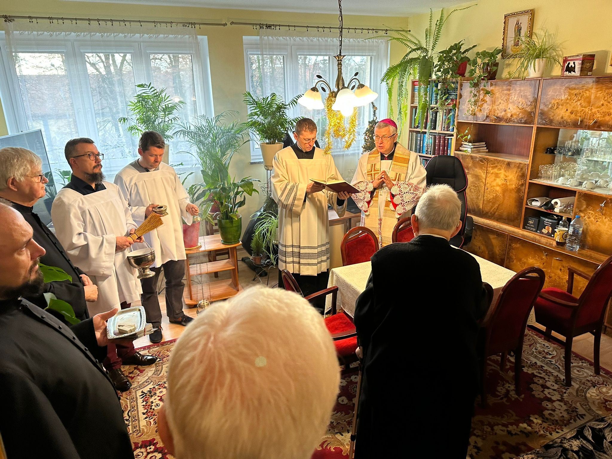 W drugi dzień nowego Roku Pańskiego 2023 Biskup Legnicki Andrzej Siemieniewski odbył wizytę duszpasterską w Domu Księży Emerytów w Legnicy. Kolęda rozpoczęła się wspólną modlitwą w kaplicy DKE, po czym Ksiądz Biskup odwiedził i pobłogosławił mieszkania wszystkich kapłanów.