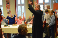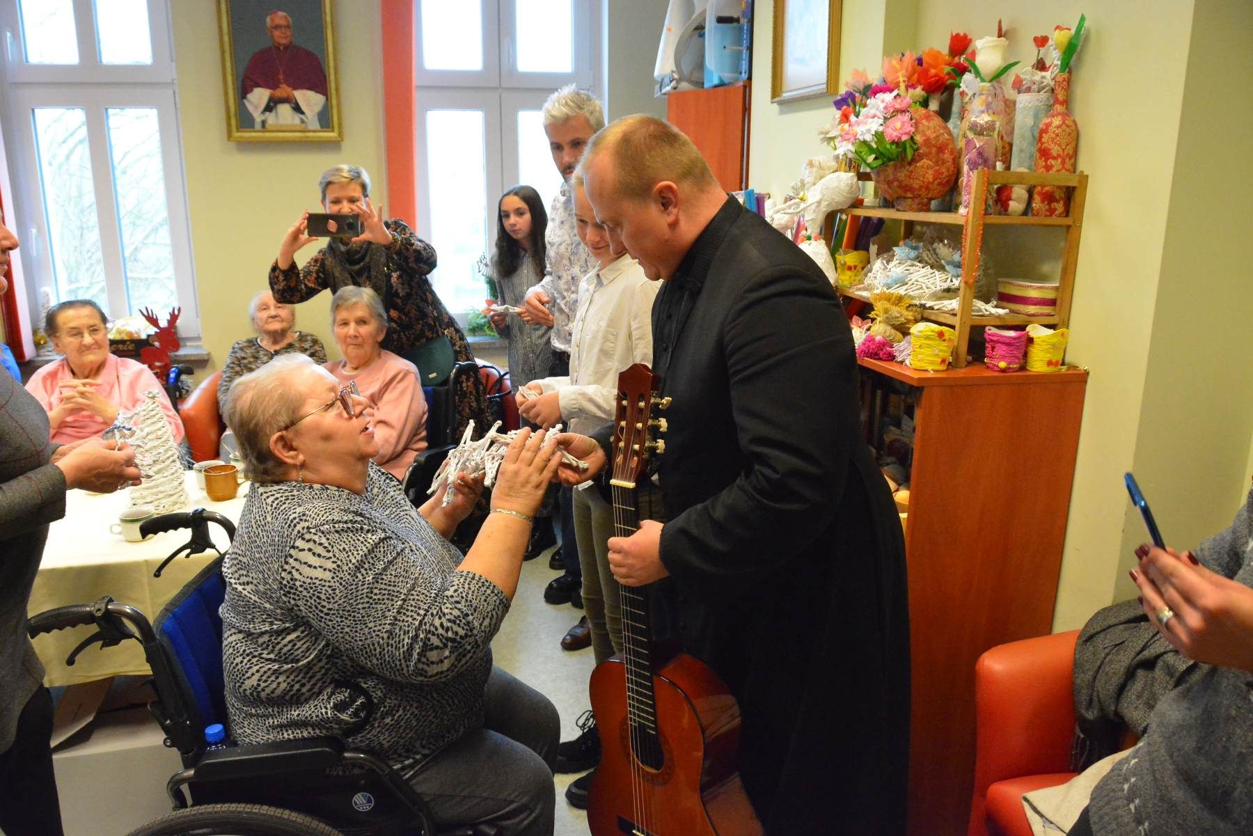 Już po raz kolejny uczniowie SP w Zbylutowie wraz z proboszczem i opiekunami odwiedzili ośrodek legnickiej Caritas "Samarytanin". Od wielu już lat dzieci przygotowują dla pensjonariuszy ośrodka upominki z okazji świąt. Każdego roku na tę wizytę wszyscy z radością czekają. W tym roku radość była tym większa, że po dwuletniej przerwie spowodowanej przez pandemię, dzieci mogły spotkać się z seniorami. Były życzenia, wspólne śpiewanie kolęd i prezenty. Tym razem obdarowani zostali także goście ze Zbylutowa. Seniorzy podczas warsztatów przygotowali zdobione gwiazdki, które wszystkim będą przypominały gwiazdę betlejemską, która zwiastowała narodziny Syna Bożego.
