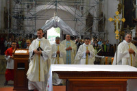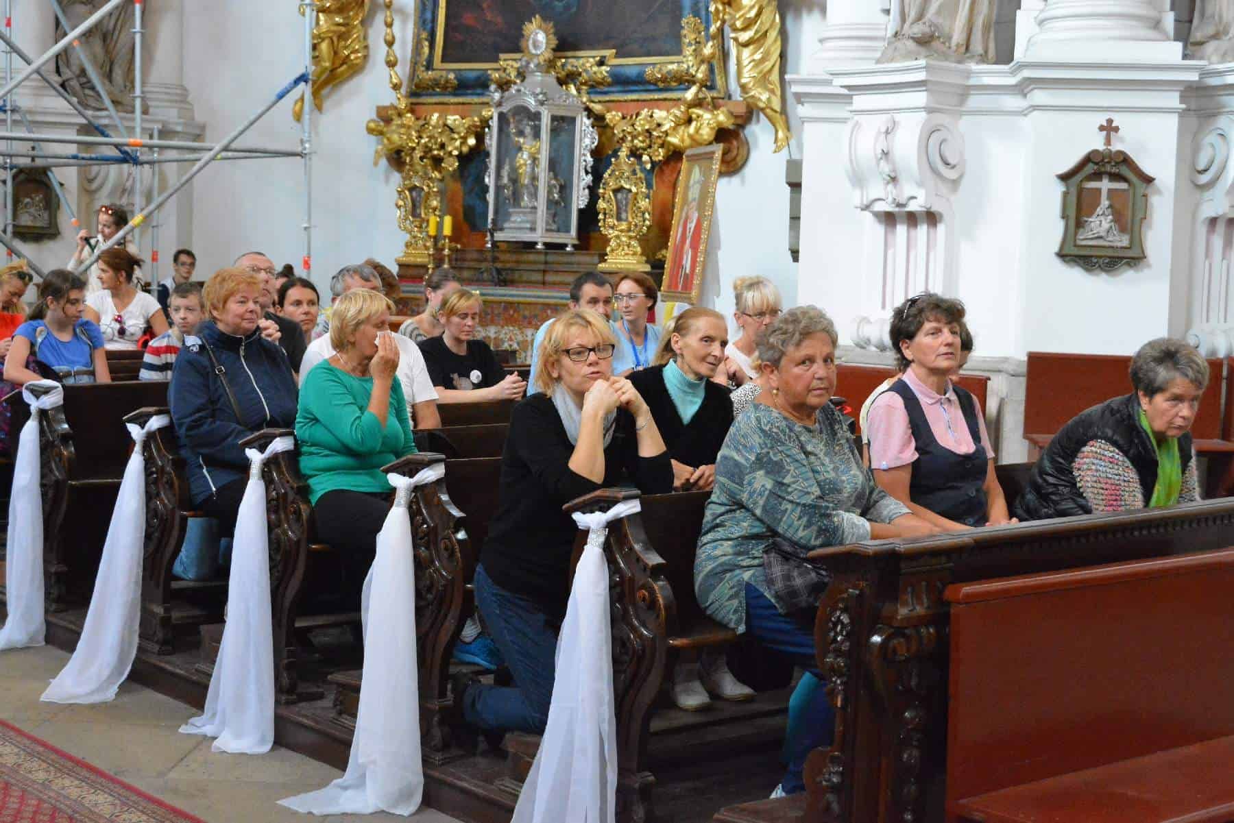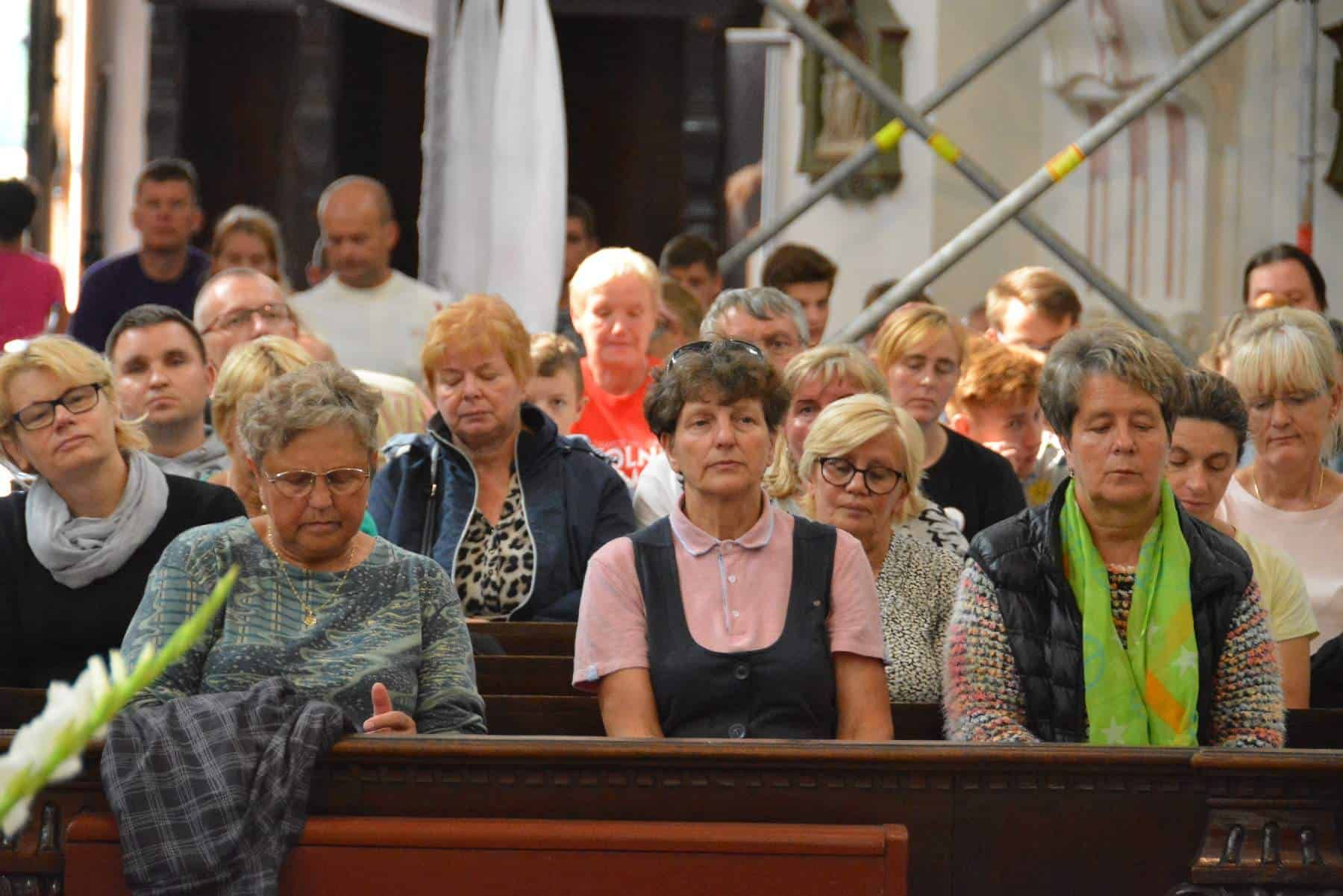 Po powitaniu i przedstawieniu najważniejszych informacji dotyczących zabytkowej świątyni, pielgrzymi uczestniczyli w Mszy św., której przewodniczył ks. Mariusz Majewski, a homilię wygłosił ks. Krzysztof Wiśniewski, ojciec duchowny legnickich pielgrzymek.