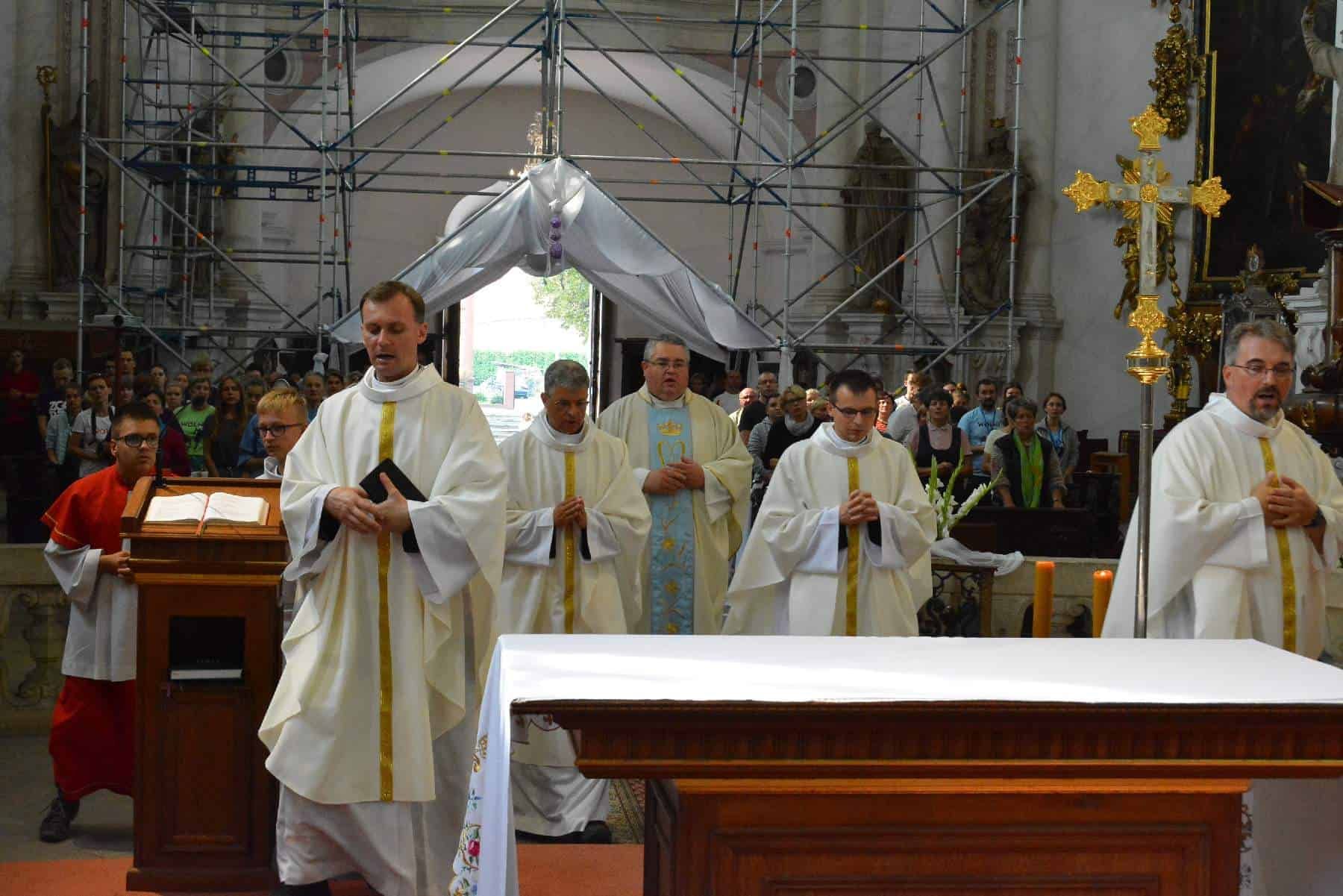 W południe wszyscy dotarli do Legnickiego Pola, do bazyliki Podwyższenia Krzyża Świętego i św. Jadwigi Śląskiej. W progach świątyni wody święconej nie szczędził pielgrzymom ks. Tomasz Bunikowski, wikariusz miejscowej parafii.