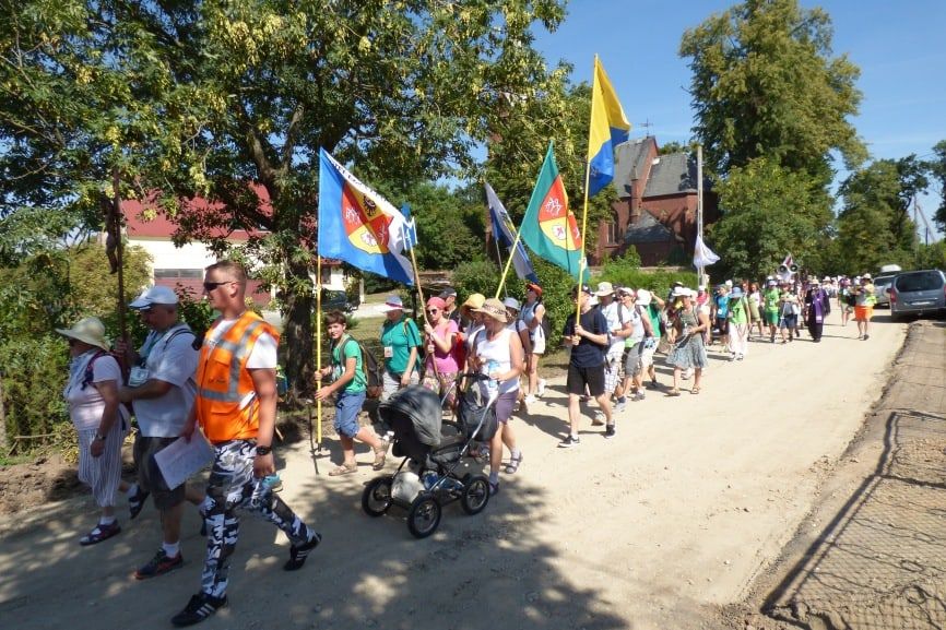 Zielona Legnica na pielgrzymkowym szlaku. Około 60-osobowa grupa pątników wędruje w grupie nr 4. Maszerują w niej głównie mieszkańcy Legnicy. Patronami grupy są Św. Apostołowie Piotr i Paweł. Po raz kolejny pątników na Jasną Górę prowadzi ks. Przemysław Superson.
