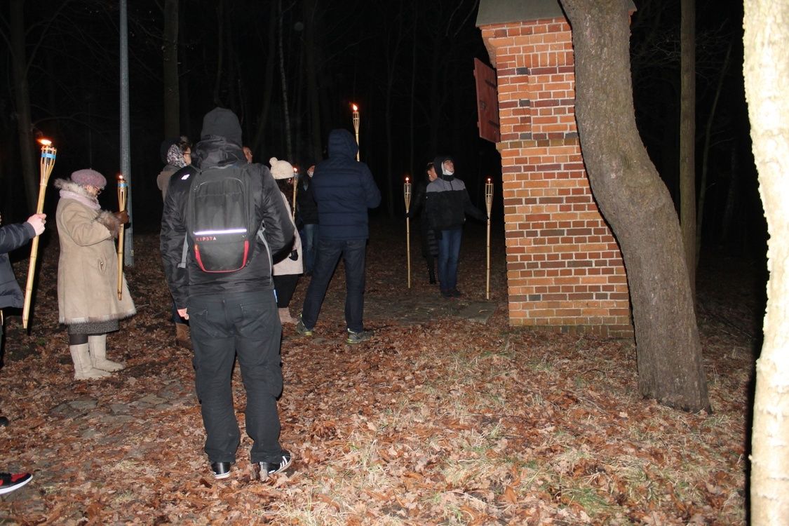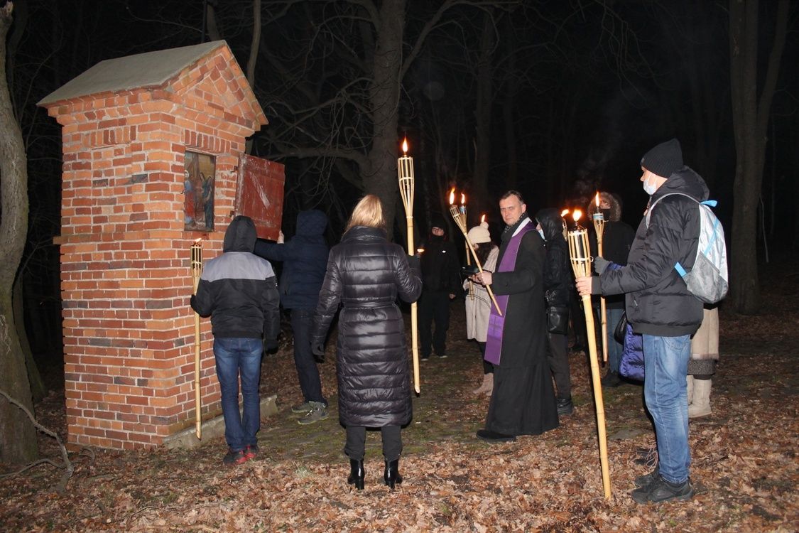 Uczestnicy wydarzenia drogę leśną oświetlali światłami pochodni. Przy każdej stacji męki Pańskiej zapalali znicz i modlili się. Klimatu dodawała nastrojowa muzyka oraz rozważania płynące z głośnika.