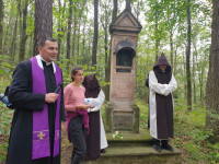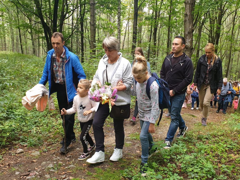Nabożeństwo Drogi Krzyżowej rozpoczęło się przy Domku Pustelnika. Rozważania nawiązywały do życia św. Joanny Beretty Molla. Relikwie patronki rodzin towarzyszyły pielgrzymom wędrującym dróżkami cysterskiej drogi położonej w Parku Krajobrazowym „Chełmy”. Nabożeństwu oraz Mszy św. polowej na szczycie góry Górzec przewodniczył ks. Bogusław Wolański - proboszcz parafii pw. św. Józefa Oblubieńca w Olszynie.