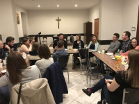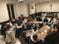 Pan Mateusz dzielił się świadectwem trwania przy Bogu w różnych sytuacjach swojego życia, wprowadzał nas w świat życia aktorskiego, teatralnego i przenikania tej rzeczywistości w życie codzienne. Jego niezwykła otwartość pozwalała wszystkim zebranym wsłuchiwać się w tę historię życia z zapartym tchem, tym bardziej, że Pan Mateusz był jednym z prężnie działających studentów w Duszpasterstwie Akademickim IKONA.