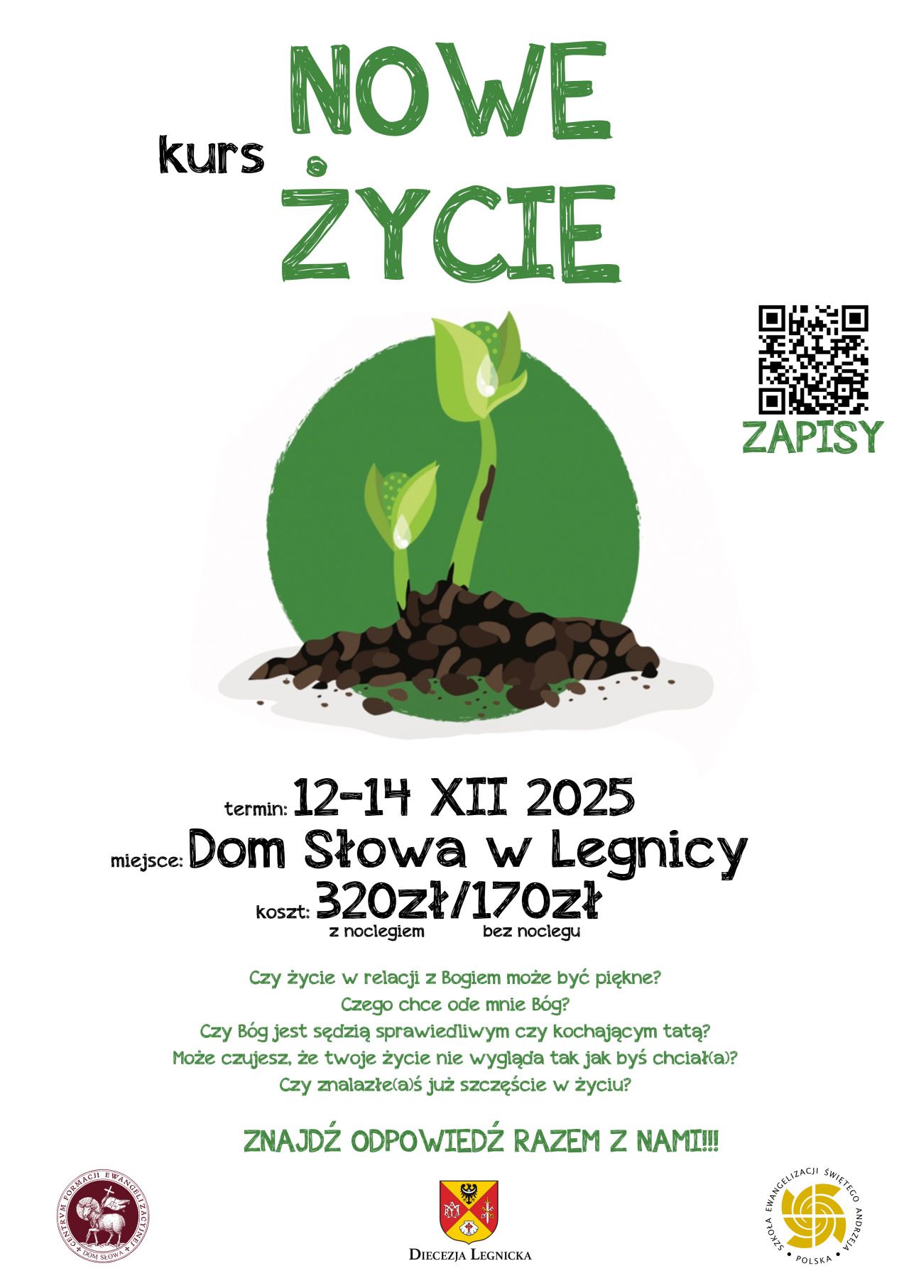 Kurs Nowe Życie w terminie 12-14 grudnia w Domu Słowa w Legnicy. Jest to wydarzenie w formie rekolekcji weekendowych, które ma na celu ożywić wiarę i dać doświadczenie żywej wiary odnowić swoją osobistą więź z Jezusem w mocy Ducha Świętego. Kurs ten jest przeznaczony dla wszystkich osób pełnoletnich. Więcej informacji i zapisy TUTAJ, natomiast plakat w załącznikach. Prosimy o rozpropagowanie wydarzenia.