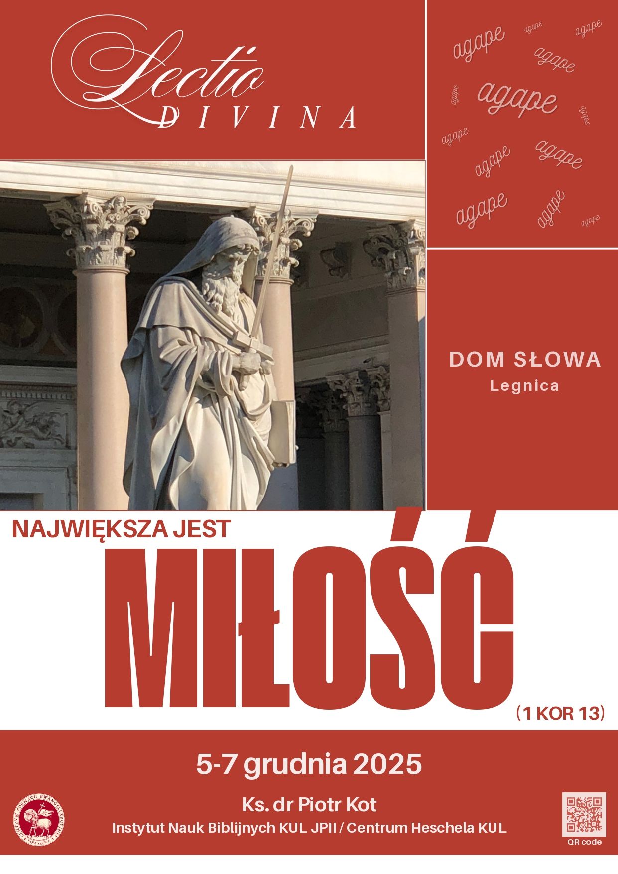 Na początku adwentu zapraszamy do udziału w rekolekcjach lectio divina ze św. Pawłem – największym ewangelizatorem Kościoła. Tym razem pozostaniemy w kręgu jego korespondencji z Kościołem korynckim i będziemy zgłębiać hymn o miłości z Pierwszego Listu do Koryntian. Na szczycie wszystkich charyzmatów i darów Ducha Świętego św. Paweł umieścił agape, miłość czystą i pełną oddania. Miłość jest duszą chrześcijaństwa – jest wszystkim. Św. Augustyn skomentował słowa hymnu o miłości z właściwą sobie prostotą: „Ama, et fac quod vis” – kochaj i rób co chcesz.